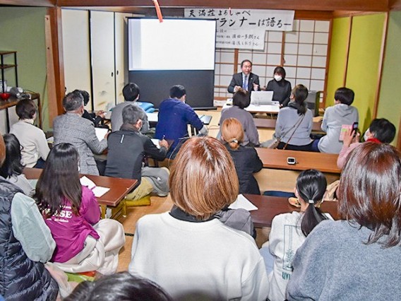 天満荘の「よるしゃべ講座」が24日、行われ、尾鷲市商工観光課の濵田一多朗課長と、尾鷲観光物産協会代表理事の湯浅しおりさんが「みんなで盛り上げよう 尾鷲の観光」をテーマに講話し、約30人の来場者と意見交換した。 ... 続きを読む