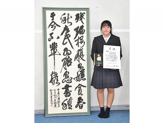 県高文祭で特選 県立尾鷲高校書道部長で2年生の太田來更(きさら)さん=尾鷲市
