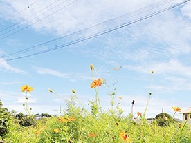 近景をめぐる「秋の訪れ 風にそよぐキバナコスモス」