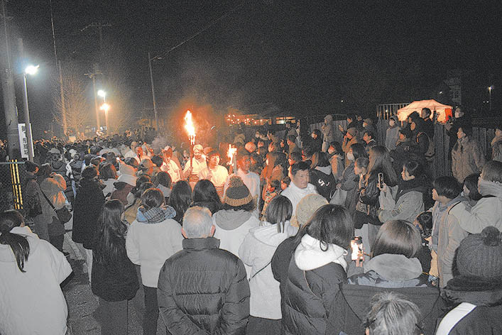 上り子全員が下山。それぞれ燃え残った松明を持って帰宅する。