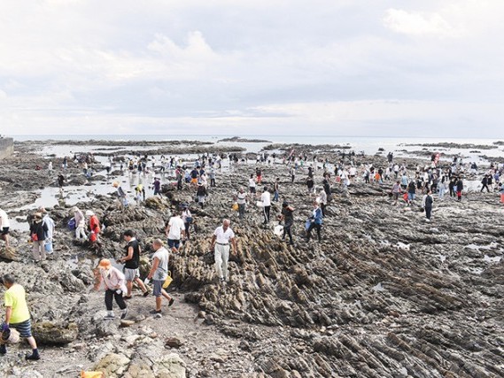 新宮市の三輪崎漁業協同組合は10日、三輪崎漁港そばの孔島周辺で「第34回潮風まつり」を開催。晴天の下、磯にばらまかれた約1万2000個のヒオウギ貝を求めて、約1800人(主催者発表)が潮干狩りを楽しんだ。その様子を写真で紹介する... 続きを読む