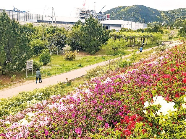 色とりどりに咲き誇る ◎…新宮市佐野、新宮港第二期緑地帯に植栽しているツツジが見ごろ