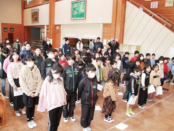 大いに盛り上がる 新宮市立熊野川小学校が高田小学校と三津