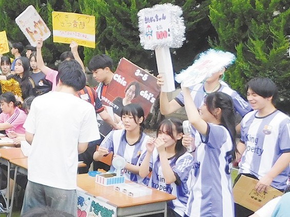 後輩への贈り物に 新「新宮高校」の校章 全校生徒・教職員で人文字