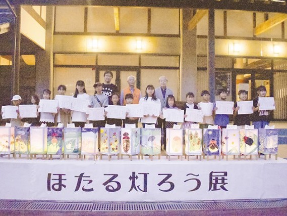 暗闇に浮かぶ幻想的な光 紀宝町大里のふるさと資料館前広場で3日、「ほたる灯ろう展」(ほたるを守る会主催