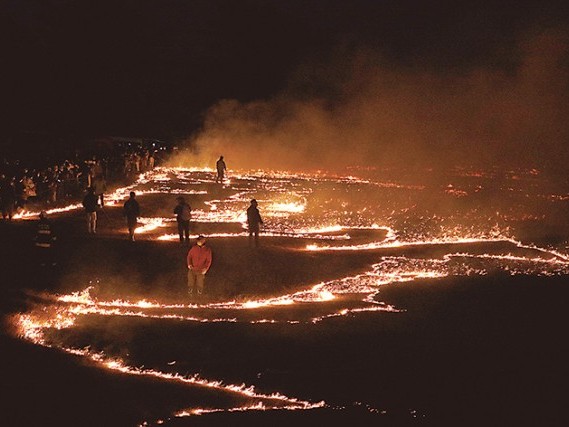 「本州最南端の火祭り」(南紀串本観光協会主催)が21日、串本町潮岬の望楼の芝で開催された。春の芽吹きを前に、古い芝を焼き新芽の生育を促すことが目的。放たれた火矢からじわりと炎が広がり、約10万平方メートルの広場が真っ赤に染まった... 続きを読む