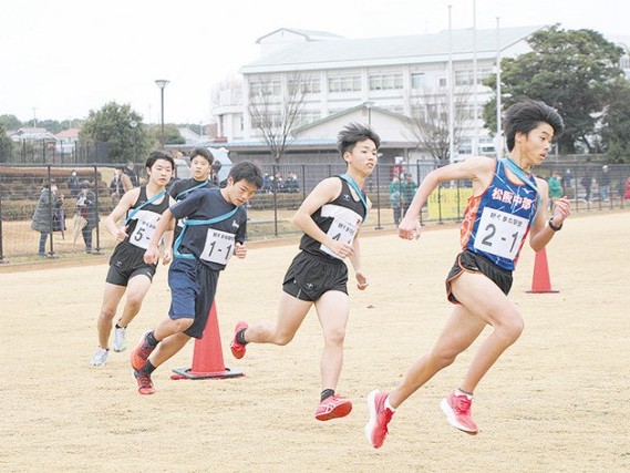 グラウンドを駆ける中学生1区のランナー