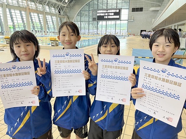 三重県短水路選手権水泳競技大会がこのほど、三重交通Gスポーツの杜鈴鹿水泳場で行われた。 11・12歳の部の女子4×50メートルメドレーリレーで、海山スイミングクラブの疇地萌衣さん... 続きを読む