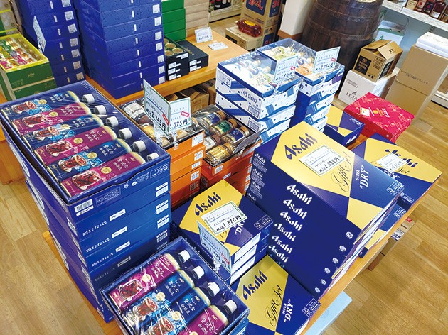 創業72周年を迎え、「夏のギフト感謝セール」をお盆まで開催中。アサヒスーパードライのビールセットはもちろん、夏には欠かせない「手延べそうめん木箱」、コーヒー・カルピスなどのドリンクギフト、ヘルシーオイルセット、ハム、洗濯洗剤ギフトセット、北海道名店寒干しラーメン10食セットなど、さまざまなジャンルのギフト商品を豊富に取り揃えている。店頭に並んである全てのギフト商品が特別価格で提供され、最大半額の品も用意されている。