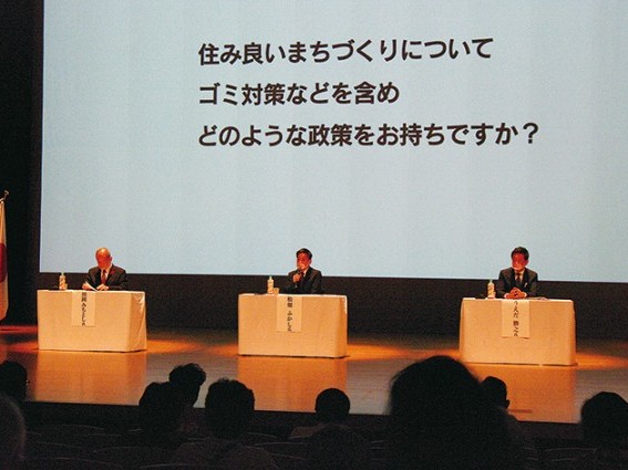 新宮市長選の告示を直前に控え、立候補予定者3人による公開討論会が15日夜、同市下本町の丹鶴ホールであった。新宮青年会議所(新宮JC)が主催し、いずれも無所属で4選を目指す現職の田岡実千年氏(60)、前市議の松畑玄氏(49)、市議... 続きを読む