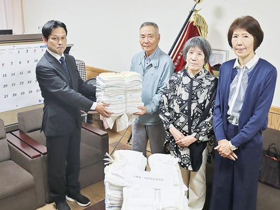 神倉小に雑巾寄贈 千穂第一地区福祉委員会