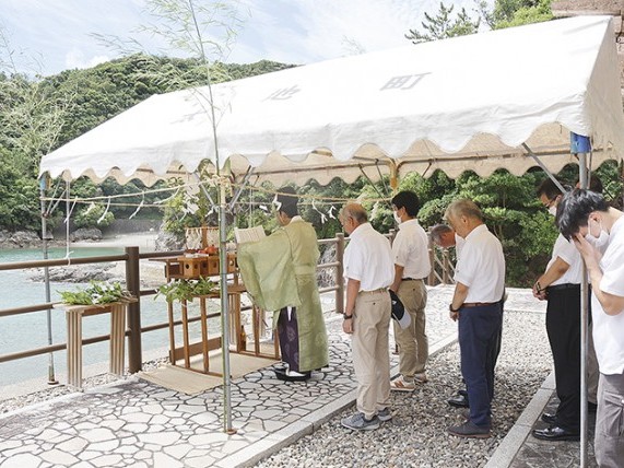 太地町太地の「くじら浜海水浴場」の開設を控え、太地くじら浜公園(理事長・三軒一高町長)は19日、安全祈願祭を行った。 安全祈願祭には関係者約20人が出席。飛鳥神社から高橋正樹宮司が出仕して、... 続きを読む