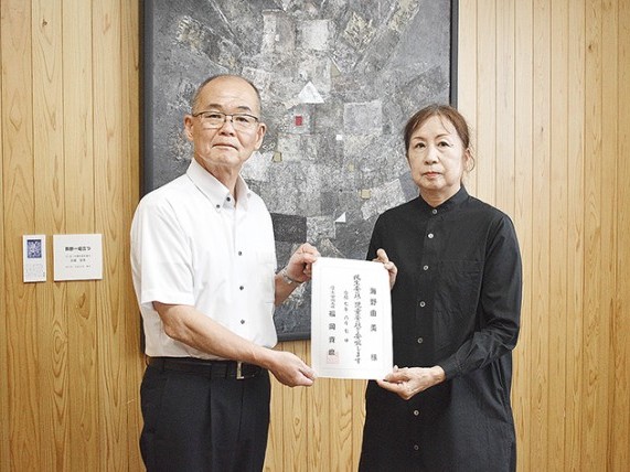 新宮市役所で25日、民生委員・児童委員の委嘱式が行われた。新たに王子地区の委員となった海野由美(よしみ)さん(田鶴原)に対し、田岡実千年市長が委嘱状を伝達した。任期は、委員の一斉改選が行われる今年11月末まで。... 続きを読む
