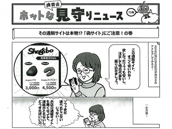 和歌山県消費生活センターは、「ホットな消費者見守りニュース第73号」を発行した。今回のテーマは、「その通販サイトは本物!?「偽サイト」にご注意!の巻」。 ネット通販で注文して「商... 続きを読む