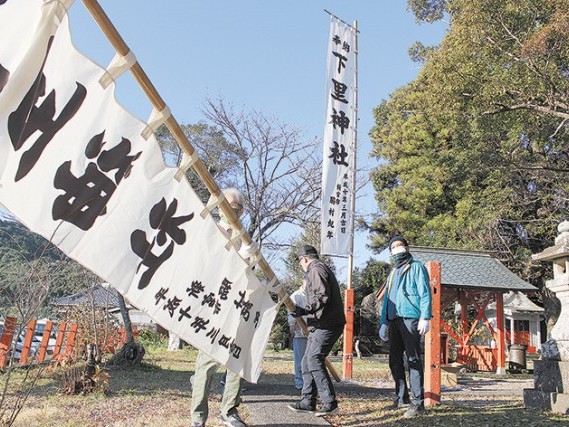 のぼり設置、しめ縄も新しく 下里神社