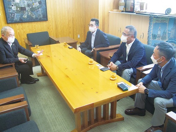 明るいまちづくりに向け 新宮ロータリークラブの新三役が8日、新宮市の田岡実千年市長を表敬訪問した。