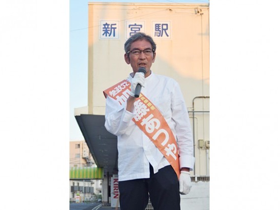 新宮駅前で政策を訴える加藤候補