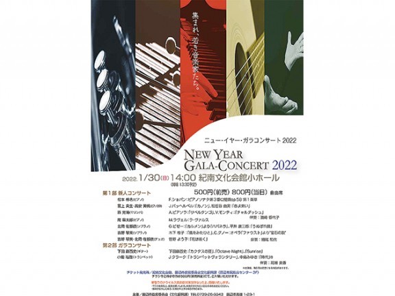 田辺市新屋敷町の紀南文化会館小ホールで30日(日)午後2時から、田辺市教育委員会主催の「ニュー・イヤー・ガラコンサート2022」が開催される。コンサートは2部制で、第1部は新人コンサート。第2部はガラコンサートとなっている。... 続きを読む