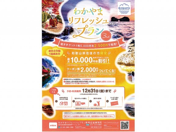 わかやまリフレッシュプラン販売促進事務局は、8日から新たに販売が始まった「わかやまリフレッシュプラン3rd」の初回電子チケットが即日完売し、次回の販売を14日(木)午前11時から予定していると発表した(対象者は和歌山県在住者のみ... 続きを読む