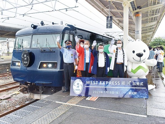 16日から運行が始まったJR西日本の長距離列車「WEST EXPRESS(ウエストエクスプレス)銀河」の京都行き上り列車(昼行)が18日正午、JR新宮駅を出発し、田岡実千年市長や県のキャラクター「きいちゃん」らが見送った。... 続きを読む