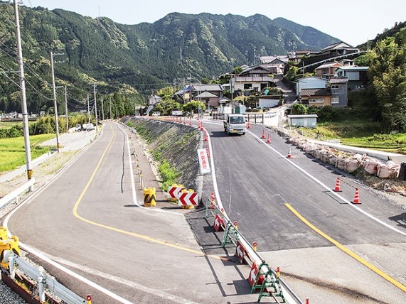 現道に切り替え通行 熊野川町日足のかさ上げ工事