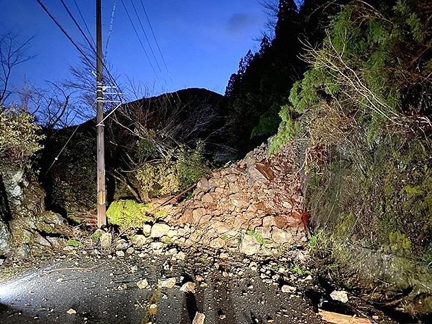 奈良県十津川村桑畑の国道168号で土砂崩れが発生し、県は25日午前5時から、果無トンネル南側から奈良交通桑畑バス停までの約1キロの間を全面通行止めとしている。県道路保全課によると、道路南斜面が高さ30メートル付近から崩れ、約20... 続きを読む