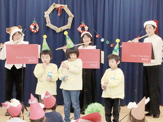 新宮市木ノ川の幼保連携型認定こども園・木の川認定こども園の「クリスマス会」が24日、同園であった。0~5歳児49人がフルートアンサンブル・ミューズの生演奏で歌い踊り=写真=、サンタクロースと一緒に遊び楽しんだ。... 続きを読む