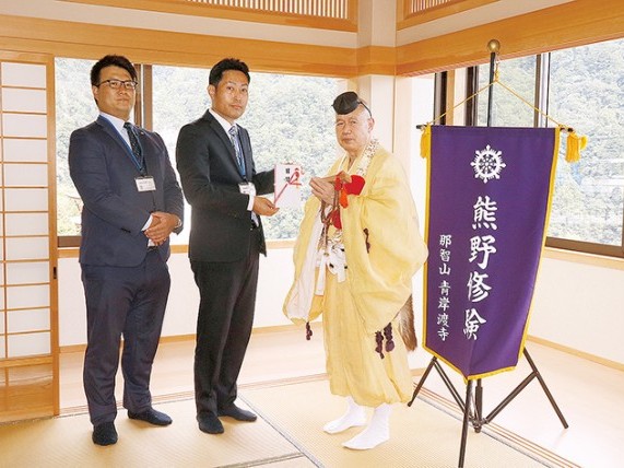 「全国、後世に信仰広めたい」 熊野修験に金一封 新宮信金