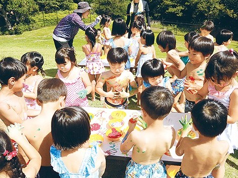 スリル満点、何度も挑む 太地こども園で水遊び