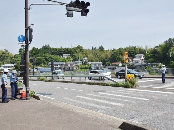 交通誘導を配置して訓練した