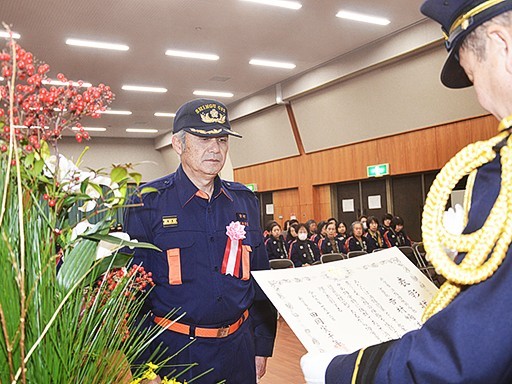 新宮市の令和2年消防出初め式が12日、同市役所別館で行われた。この日は雨天のため分列行進や一斉放水の屋外の部は中止され、式典だけの出初め式となった。 式典には消防職... 続きを読む