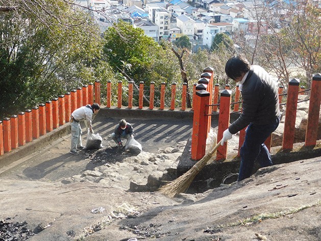 神倉神社 有志ら協力しながら お燈祭りからの斎行(さいこう)から一夜明けた7日、祭典の会場