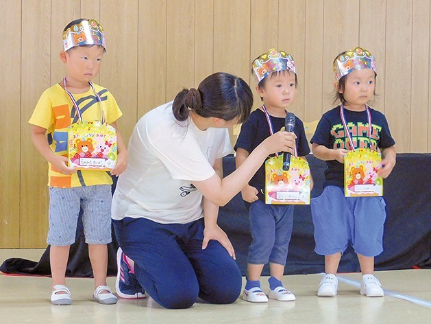 新宮市新宮にある正明保育園は8月28日、同園で8月生まれの誕生会を実施。0~5歳児の62人の園児と保護者は、植地悠天くん(3)、向結唯斗くん(3)、中道太雅くん(4)の3人を祝った。 3人の... 続きを読む