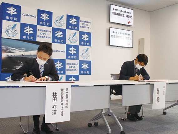 地域課題、共に取り組む 串本町サンゴ台の串本町役場で1日、「串本町と第一生命