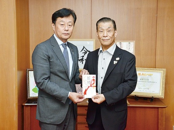 那智勝浦町で行われた、ねんりんピック紀の国わかやま2019のダンススポーツ交流大会の会場で、台風19号災害と首里城火災に関する2つの募金箱を設置。その送金の依頼が11日、那智勝浦町役場で行われた。野田尚児和歌山県ダンススポーツ連... 続きを読む