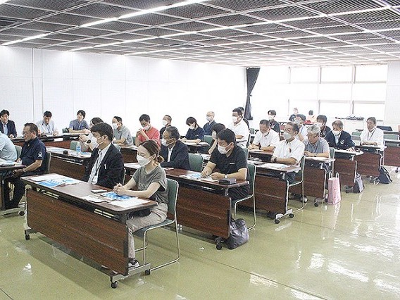 那智勝浦町の事業者ら 那智勝浦町はこのほど、同町天満の町体育文化会館で「キャッシュレス推進説明会」を開
