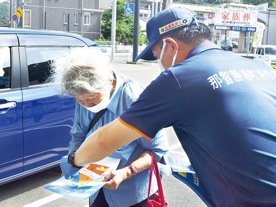 那智勝浦町消防署は22日、同町天満のAコープなち店駐車場で、熱中症予防と救急車適正利用の啓発活動を実施した。 梅雨時期特有の蒸し暑い日が続き、夏本番も控える中、熱中症の予防や、救... 続きを読む