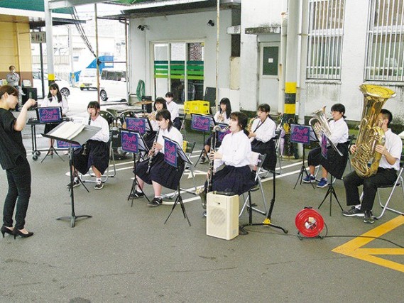 慣れない環境下で完奏 那智勝浦町立那智中学校の吹奏楽部(部員12人)は21日、同町天満のAコープなち店