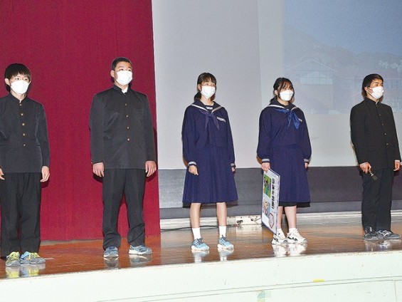 発表を行う色川中の生徒ら