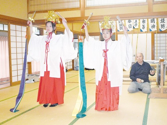 新宮市の熊野速玉大社の例大祭(15・16日)を控え、祭りで「鈴剣の舞」を奉納する稚児「神子(かみこ)」の練習が4日、同大社で行われた。小学5年生の女子2人が巫女装束に髪飾りを被った本番の衣装で、舞の動きを確認した。... 続きを読む