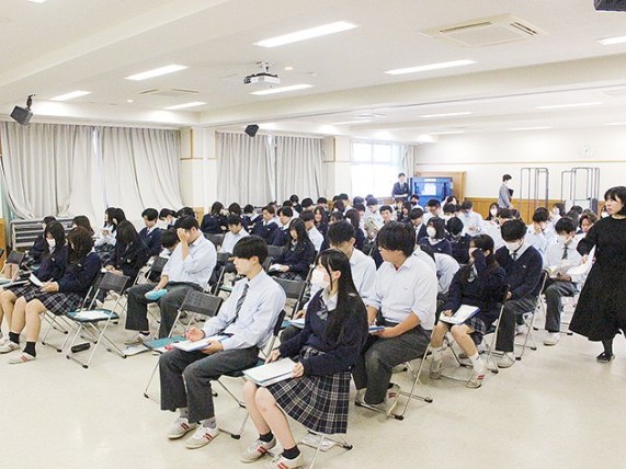 県相談員講師に迎え 和歌山県立新翔高校は1日、高校卒業まで残り4か月となった同校3年生104人を対象に
