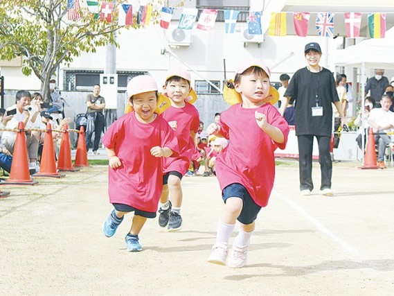 声援受け頑張る 新宮市立丹鶴幼稚園は7日、「令和5年度運動会」を開催した。今年度は新型コロナウイルス感