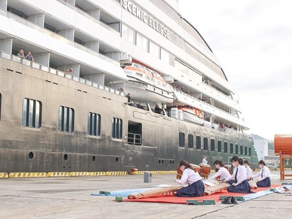 外国客船「シーニック・エクリプス」が15日、新宮港へ寄港、同日夕方の出港時には和歌山県立新宮高校琴部と熊野水軍太鼓保存会(紀宝町)による演奏で見送った。 オーストラリアのシーニッ... 続きを読む