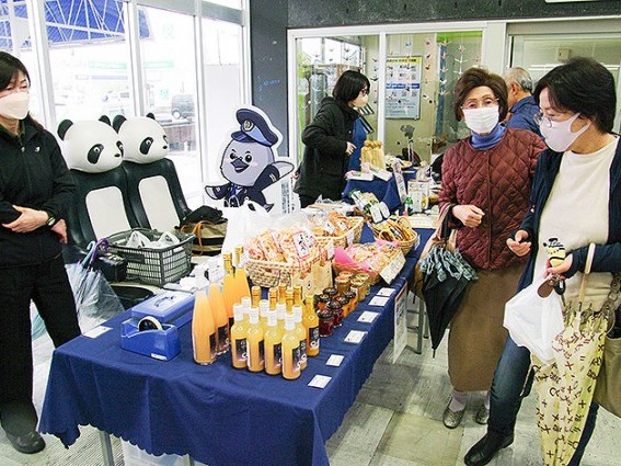 物産店を楽しむ駅利用客