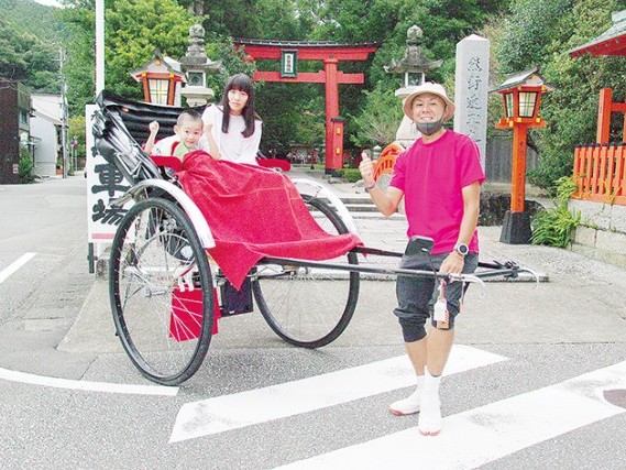 新宮市でも無料で乗せる 「人力車でつなぐ笑顔の輪」をテーマに人力車を押して、