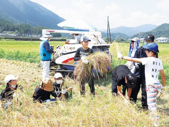 新宮市熊野川町日足、「日足道路」下の水田で24日、近大附属新宮中学校1年生による稲刈り体験が行われた。 生徒たちは4月下旬に田植えを行い、その後、地元の「マインズ営... 続きを読む