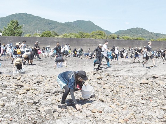 新宮市の三輪崎漁業協同組合は6日、三輪崎漁港そばの孔島周辺で「第36回潮風まつり」を開催。晴天の下、磯にばらまかれた約1万2000個のヒオウギ貝と約200キロのバイ貝を求めて、約1800人(主催者発表)が潮干狩りを楽しんだ。... 続きを読む
