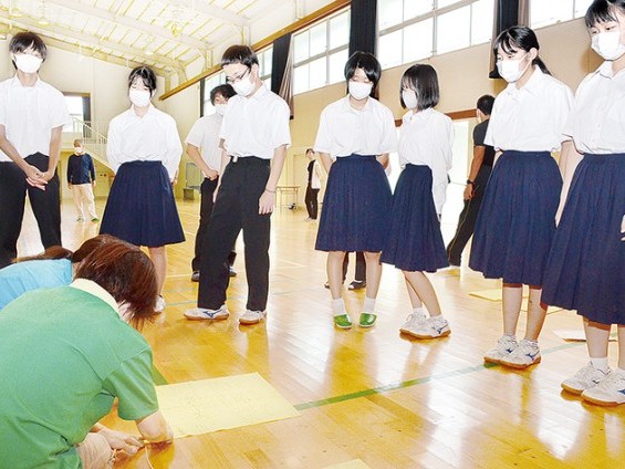 吊り方を習う生徒ら