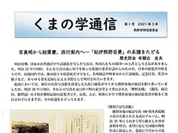 熊野学研究委員会(中瀬古友夫委員長、委員13人)はこのほど、熊野地方の自然や歴史を分かりやすく紹介して、そのPRに努めるべく、「くまの学通信」第1号を発行した。 同委員会は、豊かな自然と歴史... 続きを読む