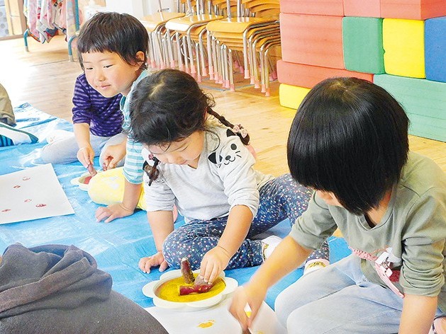 新宮市立丹鶴幼稚園は19日、芋掘りで収穫した小さなイモをスタンプにして「葉っぱのお家」作りを行った。5歳児は園庭に植えている木を見て、紅葉をイメージした絵を作成しており、この日は4歳児14人を対象に「葉っぱのお家」の制作に取り組... 続きを読む